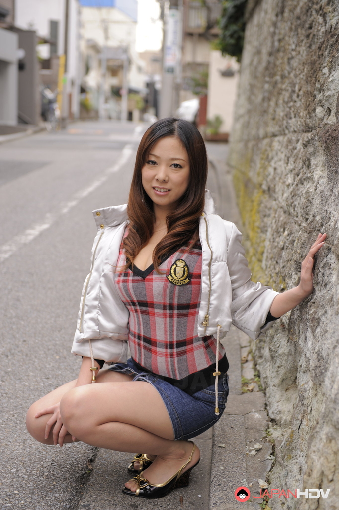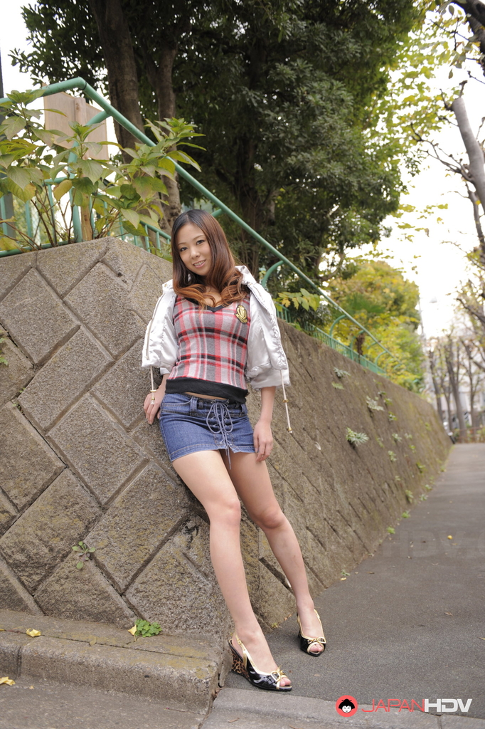 Curly haired Asuka gets horny while outdoors